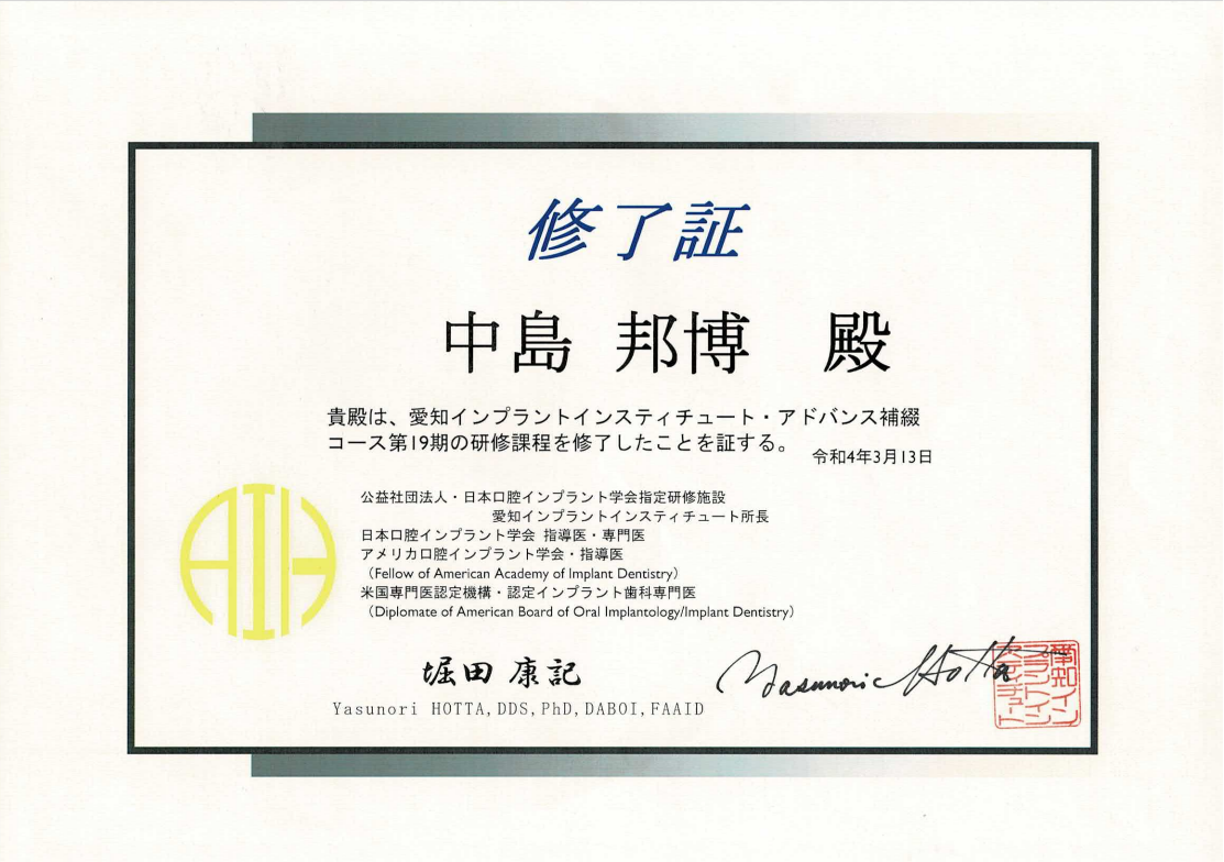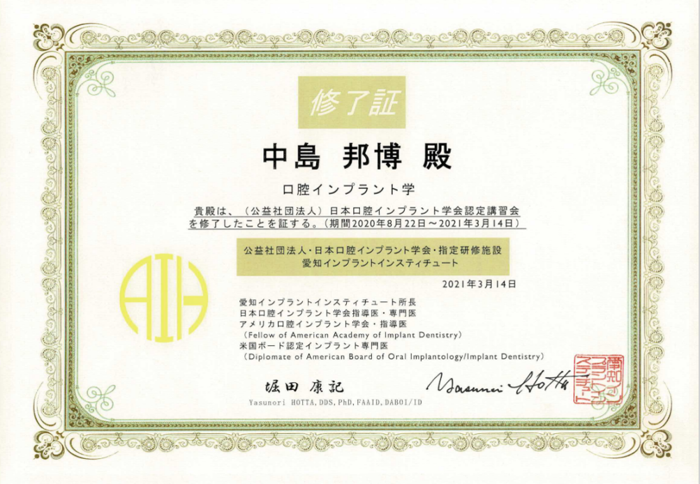 - 平成27年 徳島大学病院歯科医師臨床研修 修了