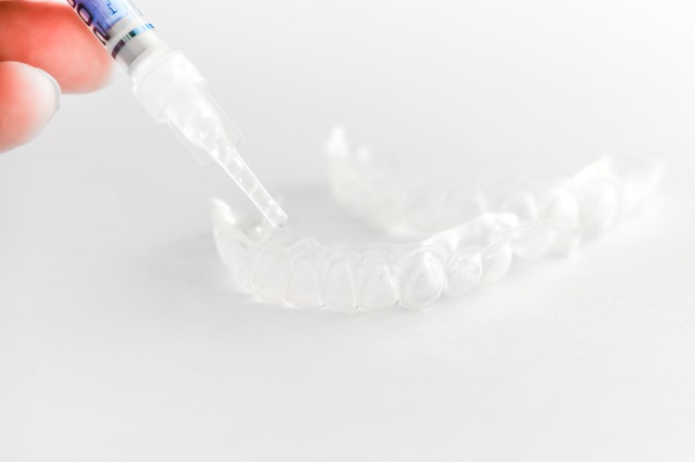 - 歯形を模したマウスピースに、漂白したい歯に合わせて薬剤(ジェル)を入れて準備します。
