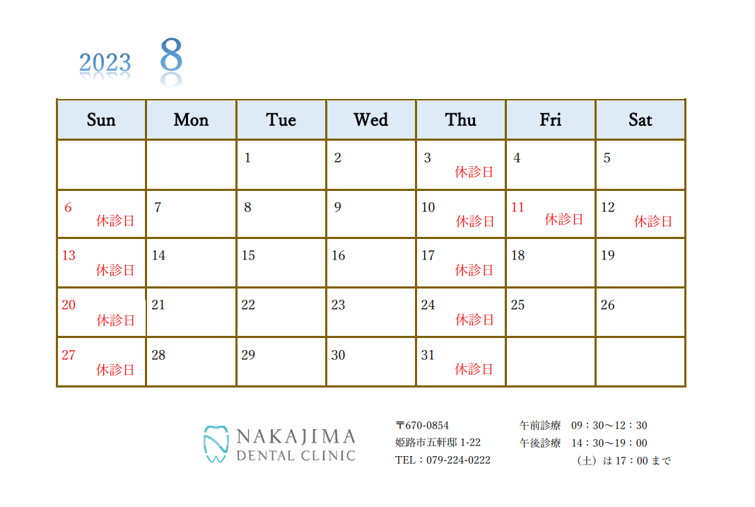 2023.8月 診療日のお知らせ