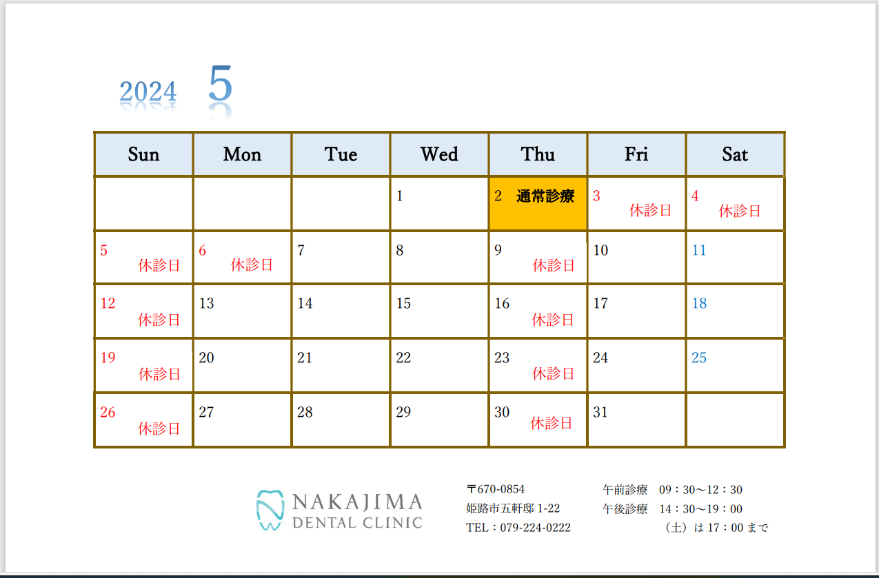 2024.5月の休診日のお知らせ