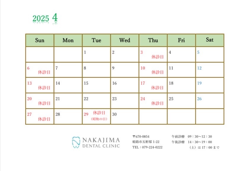 2025年4月の休診のお知らせ