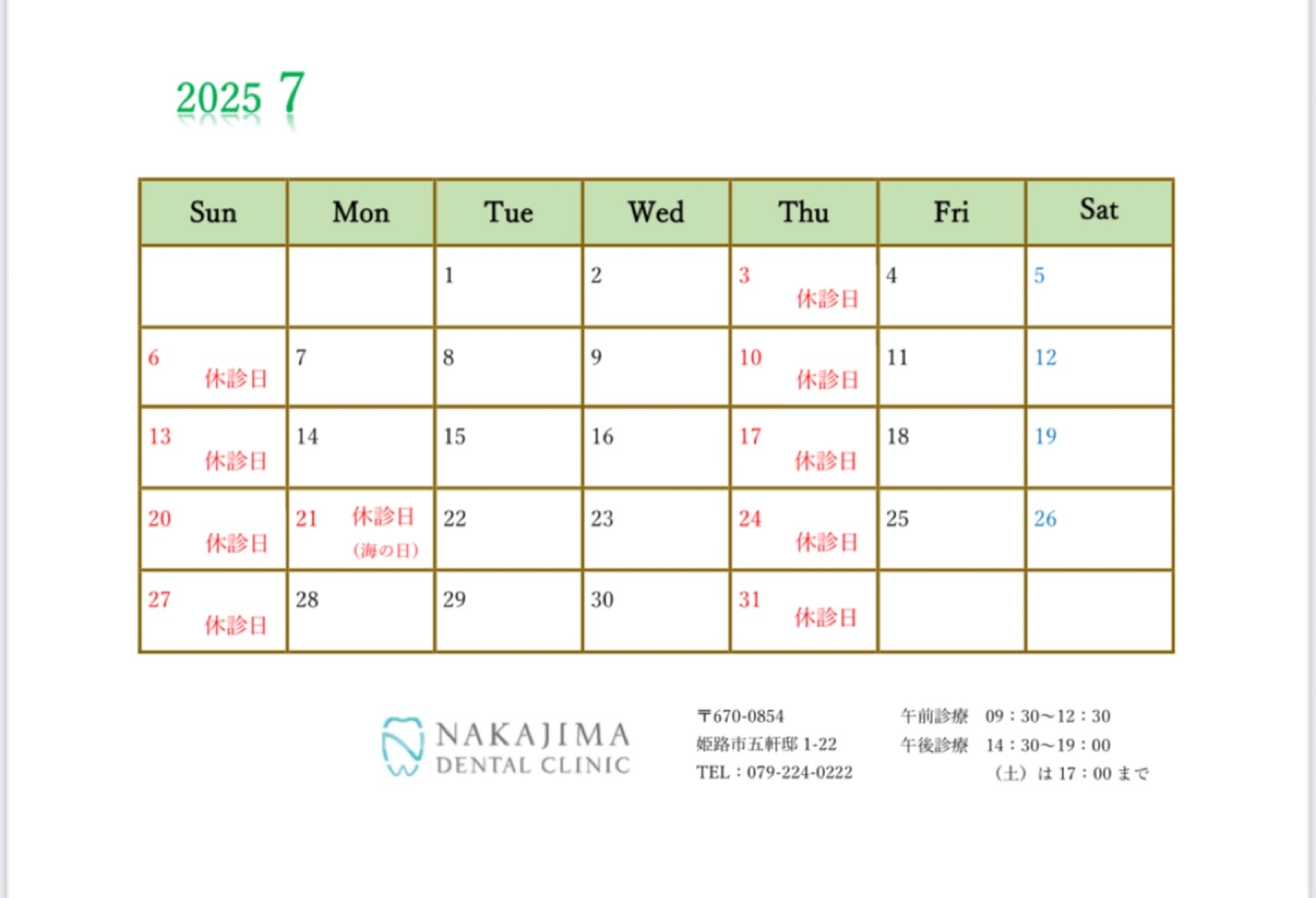 2025年7月の休診のお知らせ