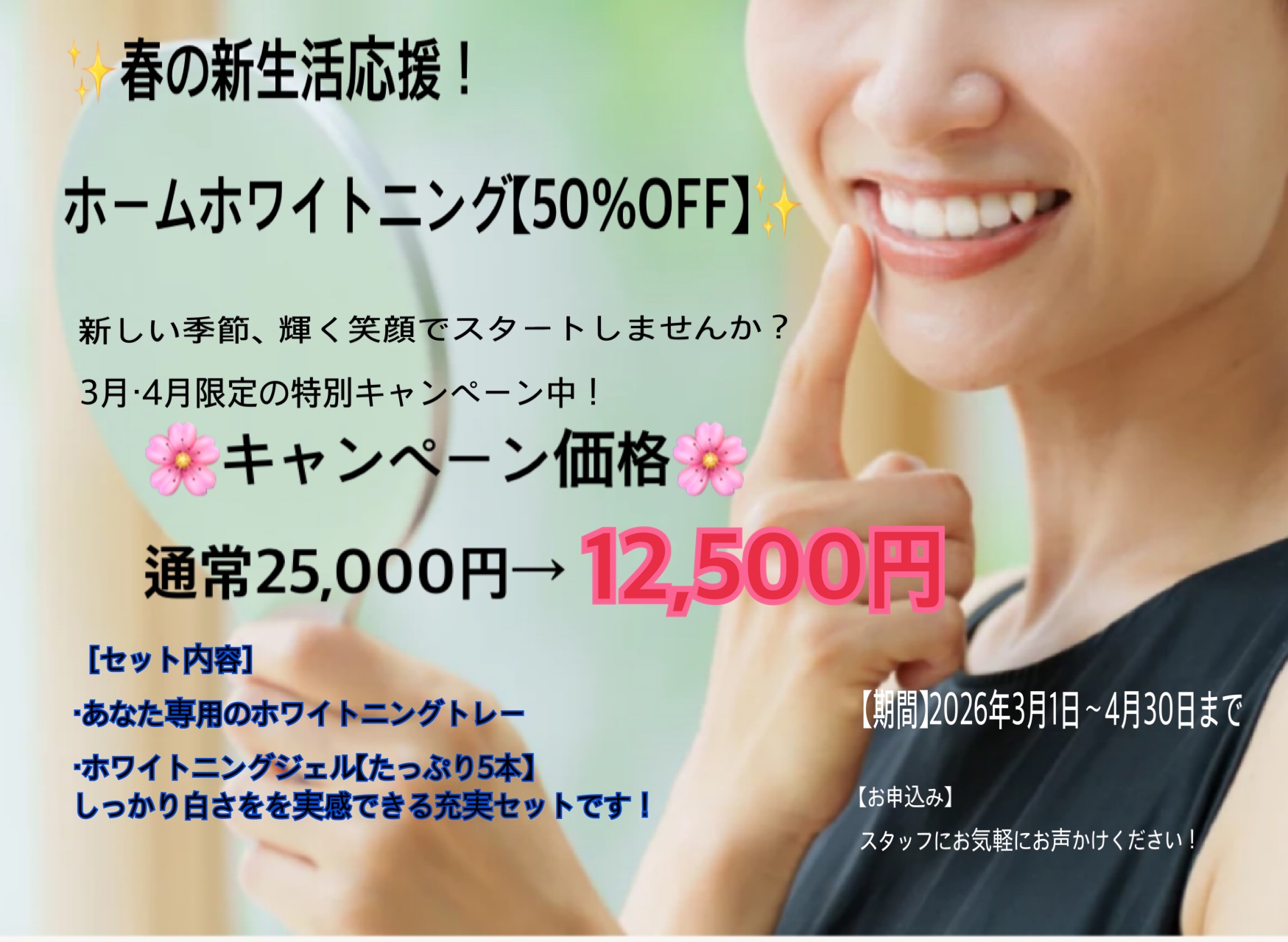 この春、[なかじまデンタルクリニック]から新生活応援キャンペーンのお知らせです!